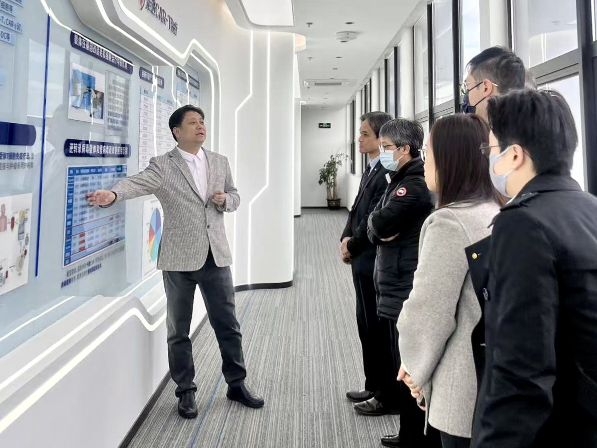 On the morning of December 16, a delegation from the General Office of the Hospital Authority of the Hong Kong Special Administrative Region, including Dr. Xie Dazhi , Senior Administrative Manager of the Integrated Clinical Services Department, Ms.Ou Kunye, Manager of the Clinical Services Department, Ms.Yang Huimin, Senior Pharmacist of the Hospital Authority, Dr. Chen Shouren, Consultant in Hematology at Queen Mary Hospital, The University of Hong Kong, Dr. Wang Shaoming, Consultant in Hematology at Prince of Wales Hospital, The Chinese University of Hong Kong, and Dr. Liu Shimin, Consultant in Hematology at Queen Elizabeth Hospital, visited Shenzhen Cell Valley for an exchange visit. The delegation was warmly received by our company's Chairman Professor Shi Yuanyuan, Chief Scientist Professor Wang Jianxun, Business Director Wei Zheng, Chairman's Assistant Fu Yuchen, Marketing Director Sun Rui, and Director of the General Office Wang Lu.