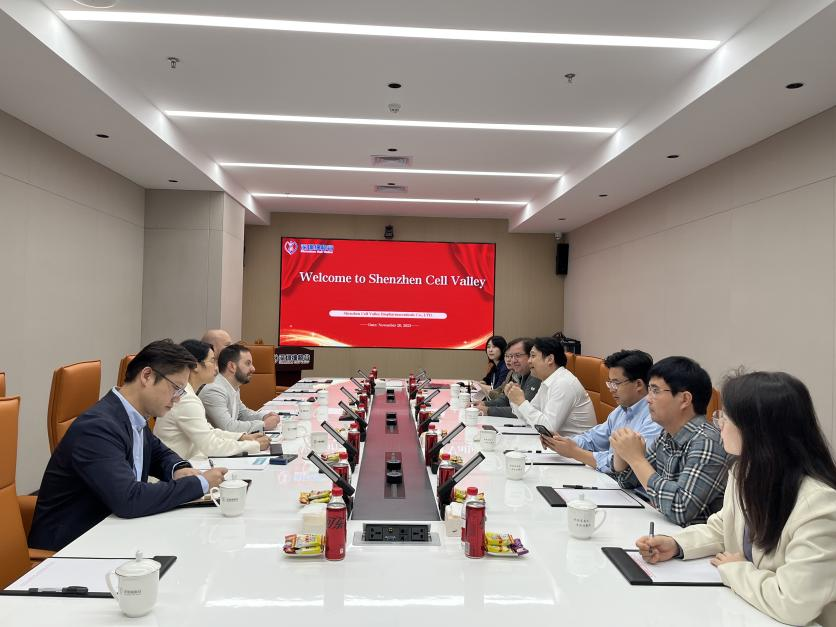 On November 20, Nathan McNally, Co-founder and Project Director of the UK P4 Precision Medicine Accelerator; Alexander Murer, Representative of the Kilobaser Austrian Genetic Testing Project; and Lynn Huang, International Project Director of GlobalTech IP UK Innovation Partnership Alliance, visited Shenzhen Cell Valley for exchange. Shenzhen Cell Valley's Chairman Shi Yuanyuan, Deputy General Manager Xiang Hua, R&D Department Head Zhao Lijun, Marketing Department Head Sun Rui, General Office Director Luan Zhishi, and Senior R&D Scientist Zhu Wenxiang warmly received them. Dr. Ivan O. Rosas, Professor from Baylor College of Medicine who was visiting Cell Valley, also participated in the meeting. Both parties engaged in discussions on expanding cell and gene therapy services to overseas markets such as Europe.