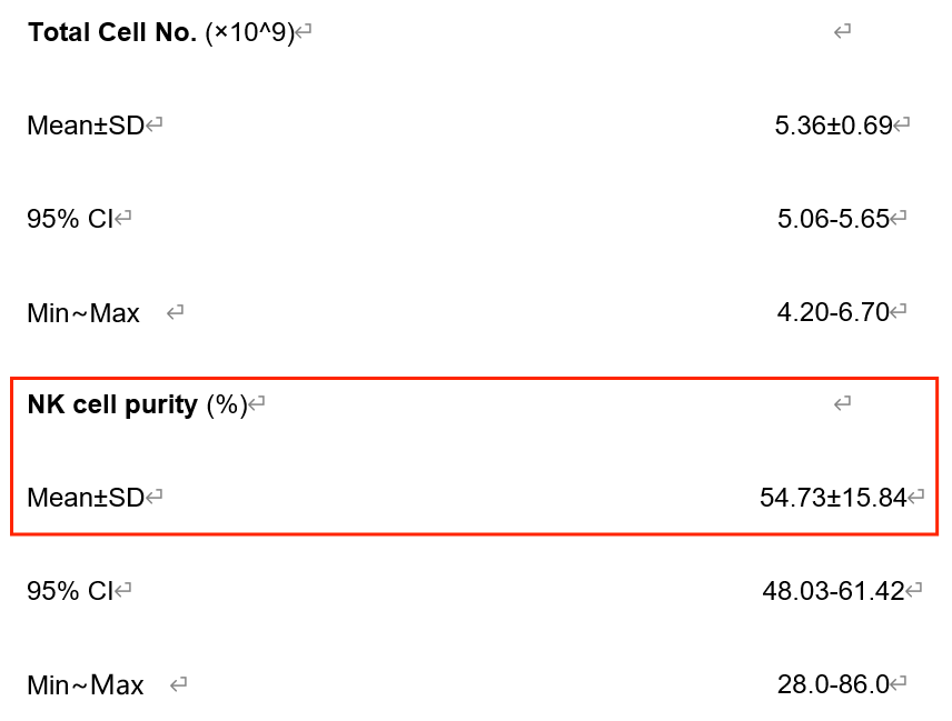 现在深圳K8凯发(中国)的NK细胞制备工艺已达到国际同种异体移植标准。NK纯度高于96%(CD56+CD3-),T细胞含量低于1%(CD3+),B细胞含量低于0.1%(CD19+)。2-3周内可制备100亿(1×1010)高纯NK细胞,并检验其对肿瘤细胞杀伤能力,用于临床治疗或临床前科学研究。详细数据见往期推文“研究进展|深圳K8凯发(中国)实现CAR-NK制备工艺重大突破”,对NK细胞研究有兴趣者可联系深圳K8凯发(中国)市场销售部。
